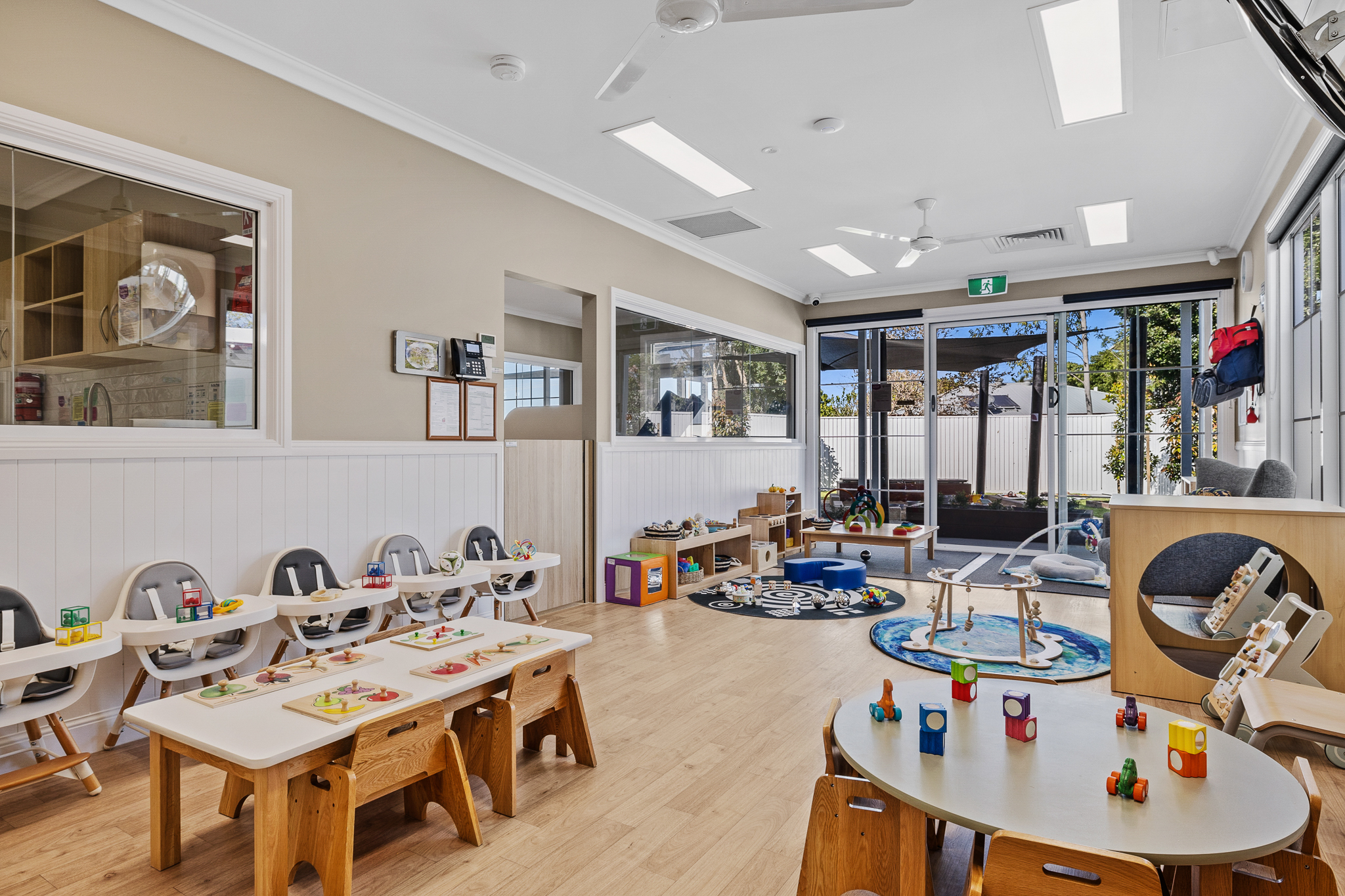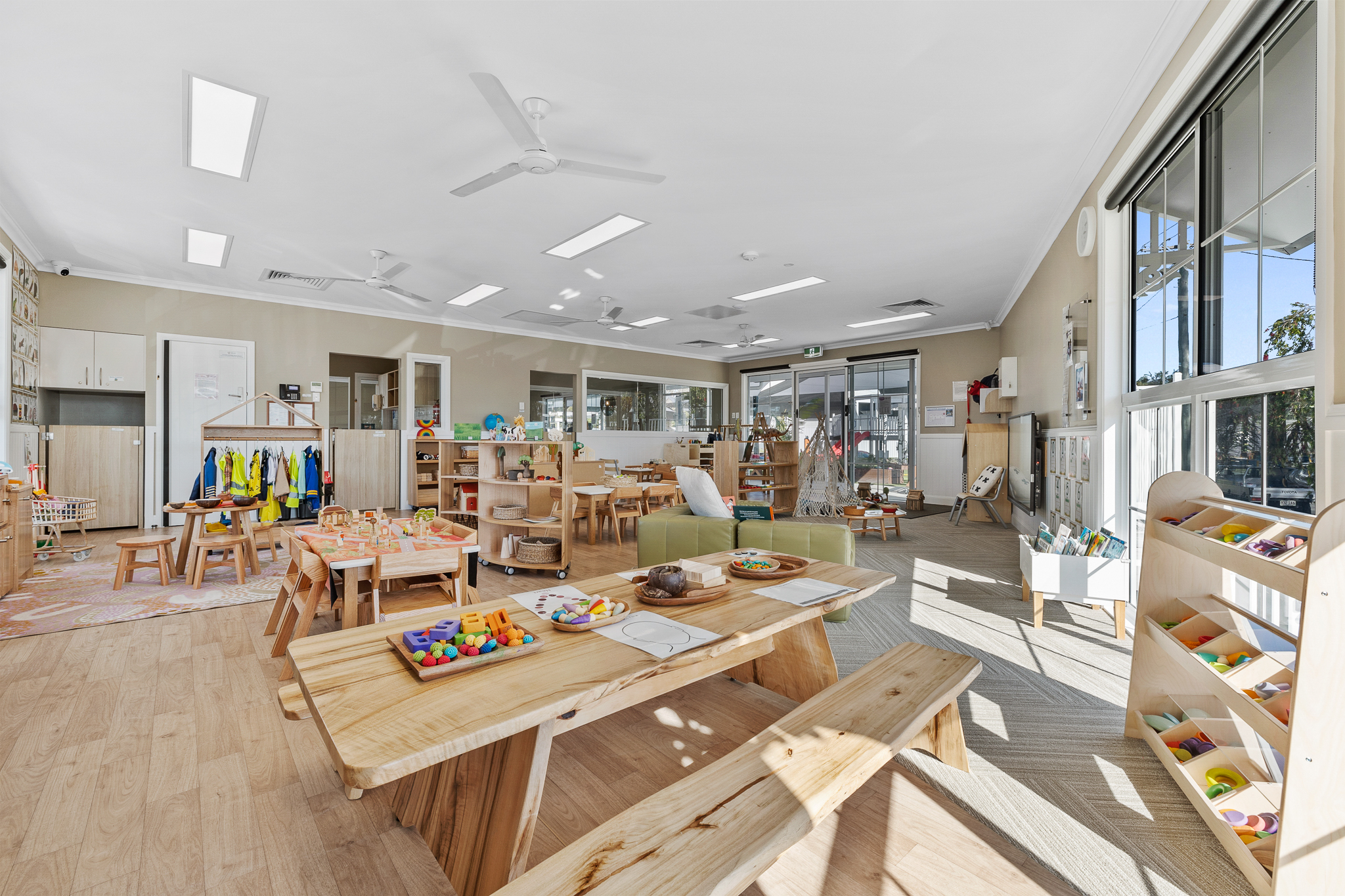 Our modern classrooms are equipped with high quality, natural educational resources, chosen to complement our curriculum and support your child’s learning journey. Within our classrooms, you will discover smaller spaces designed to make children feel secure and truly at home, including home corner, reading nooks, art studio spaces, floor & table activities and other inspiring play zones. These carefully curated spaces foster meaningful interactions between our children and Educators, promoting quality engagement and learning experiences.