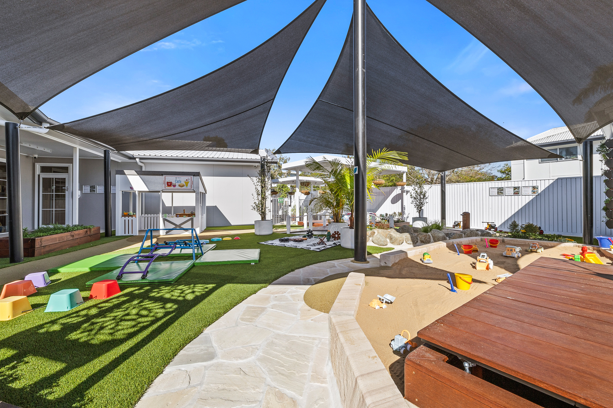 The large outdoor area at Children First Berserker provides children with the space for big movements like running, jumping, kicking and throwing, which is very important for fitness and physical development. From sandpits and bike tracks, to custom adventure forts and vegetable gardens - your little one is going to have so much fun exploring and playing in our beautiful outdoor playscapes.