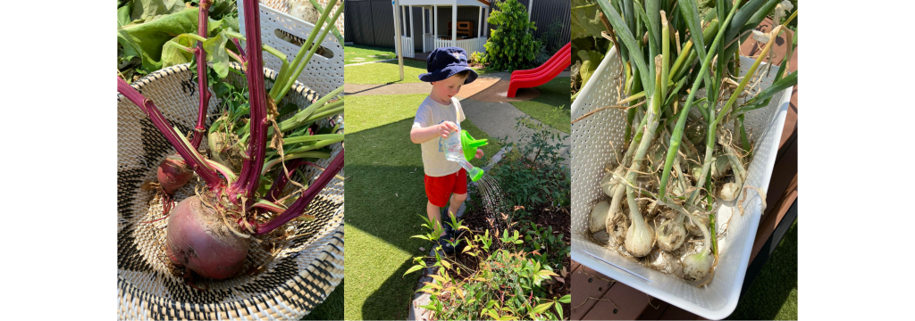 Children at Children First Early Education Angle Vale are maintaining their vegetable gardens and were able to harvest beetroot and onions that their chef could use in their healthy meals.