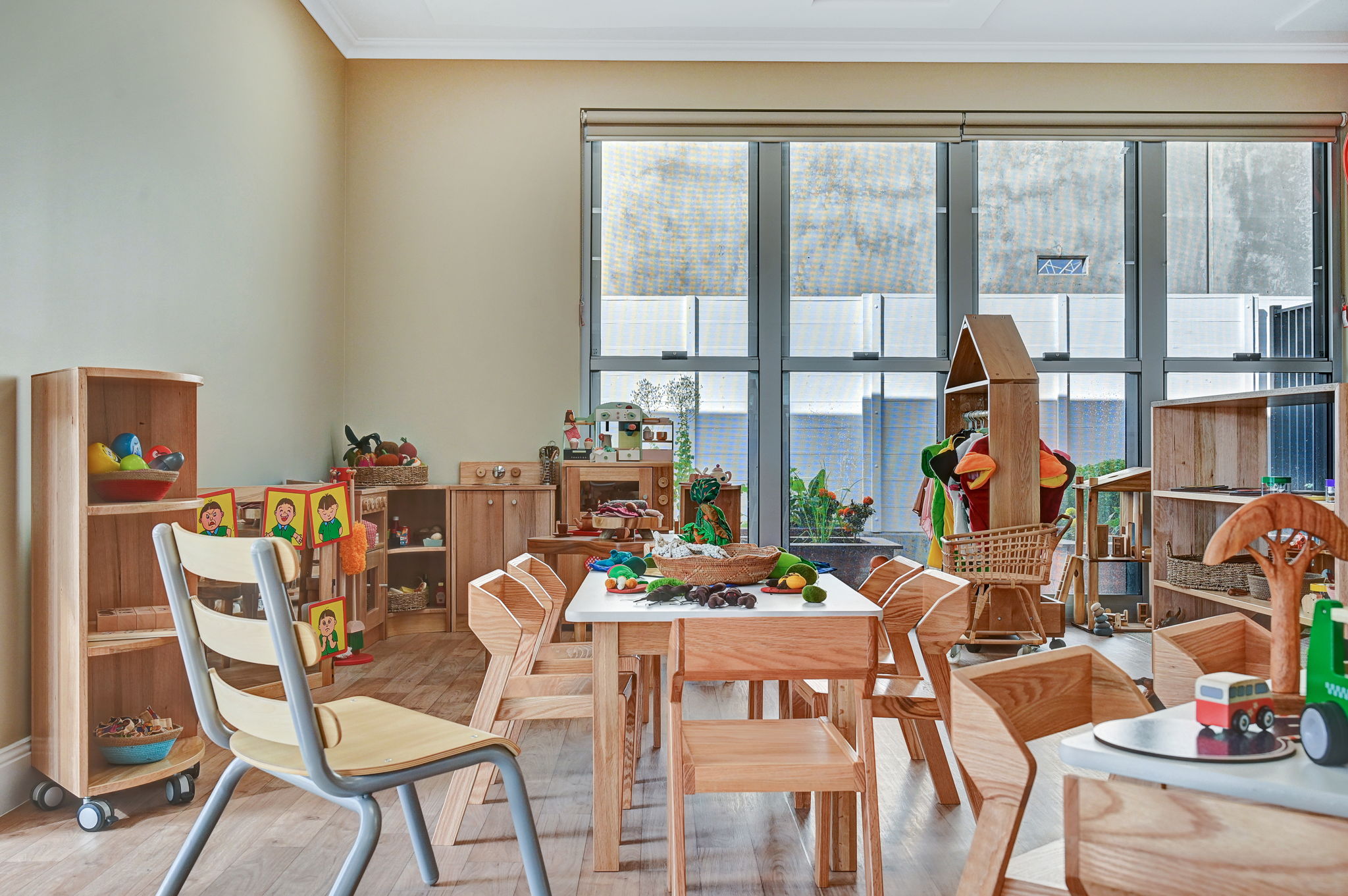 Our modern classrooms are equipped with high quality, natural educational resources, chosen to complement our curriculum and support your child’s learning journey. Within our classrooms, you will discover smaller spaces designed to make children feel secure and truly at home, including home corner, reading nooks, art studio spaces, floor & table activities and other inspiring play zones. These carefully curated spaces foster meaningful interactions between our children and Educators, promoting quality engagement and learning experiences.